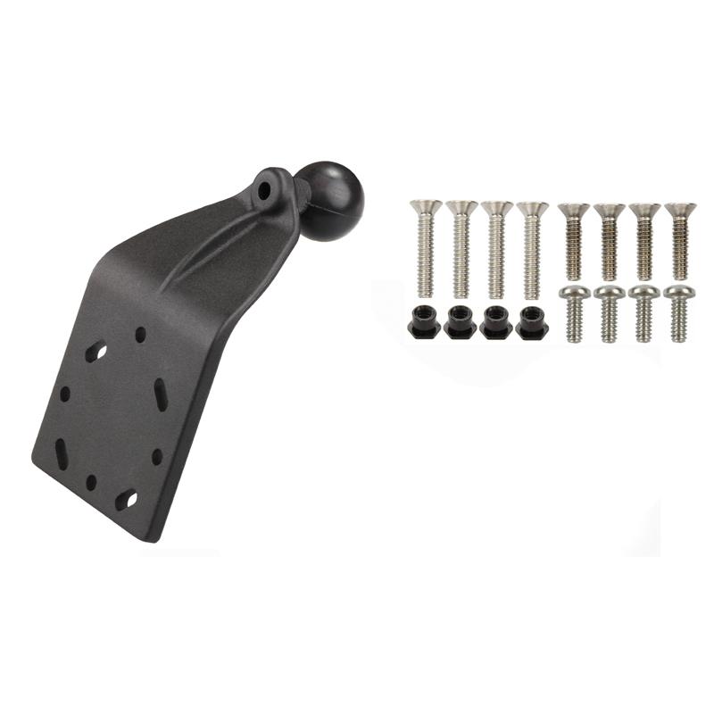 The RAM RAM-B-125B-G1U, extension base includes a 1″ rubber ball; it allows for almost infinite adjustment and perfect viewing angles. Originally designed to position your GPS in front of the yoke on your plane, the extension plate can also be used in many other applications. The mounting section of the plate is 2.5″ square, predrilled holes for many different screw hole patterns, including the universal AMPS hole pattern and all RAM made cradles. The connection section extends approximately 2.25″ forward, at a 45 degree angle, from the center of the 1″ ball and approximately 1.5” above the 1″ ball (to the bottom of the connection section of the plate).