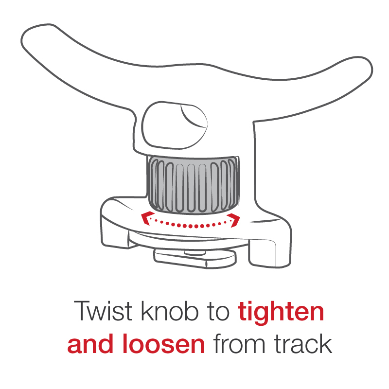 Allentando la manopola è possibile scorrere la canna da pesca o qualsiasi sistema montato lungo il binario, cosi durante la pesca sul fiume o sul lago, è possibile spostare il Tough-Cleat in una posizione ideale. Il Tough-Cleat presenta un attacco T-Bolt ed è compatibile con il RAM Tough-Track.