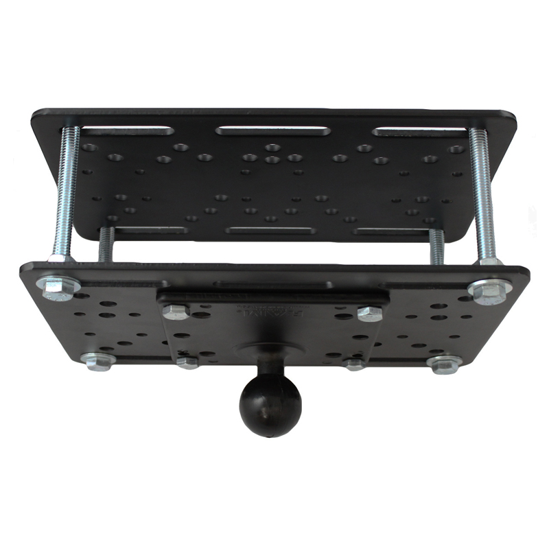 Questa piastra di montaggio per carrello elevatore è il modo ideale per fissare una sfera RAM alla maggior parte delle gabbie di sollevamento o del tettuccio. L’utilizzo di due piastre identiche di acciaio con molti fori compatibili con moltissimi standard (VESA, UMPS)