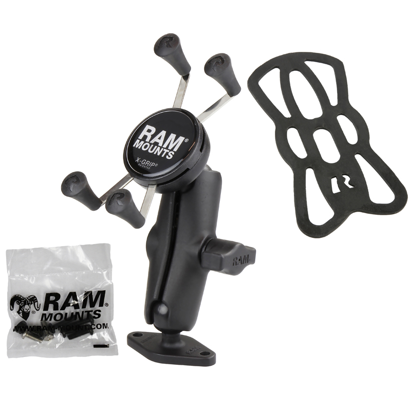 The RAM-B-102-UN7U consists of a diamond base, double socket arm and universal spring loaded X-Grip cradle for cell phones. Designed into the mount is a 1″ diameter patented rubber ball and socket system with adjustment points at the both ends of the socket arm; this with a twist of the arm knob, allows you can move the X-Grip mount to your optimum viewing position. The 2.43″ x 1.31″ diamond base has two holes 1.912″ from center to center and matches the industry standard AMPS hole pattern. The included X-Grip cradle has a clean and clever four leg design that sports great holding power without hiding your phone behind foam pads and plastic. The spring loaded X-Grip cradle expands and contracts, allowing for a perfect custom fit of your cell phone. The perfect complement to the modern sleek interior of today’s vehicles, the RAM X-Grip is the cell phone cradle evolved. The X-Grip includes a device tether recommended for outdoor applications. The cradle is compatible with handheld devices that will fit the dimensions listed below. It is important to verify the dimensions of your handheld device with a case/sleeve/skin when determining the overall size.