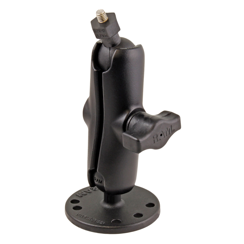 Supporto nautico Ram Mounts RAM-B-202-379-M616U con base piana e rotonda da 2,5″ di diametro con schema di fori AMPS universale, braccio a doppia presa medio e sfera da 1″ di diametro, contenente un attacco a vite esagonale M6 x 30 SS. compatibile con tutta la serie di ecoscandaglio Raymarine Dragonfly e molto altri modelli (vedi descrizione) il supporto è costituito da una sfera di diametro 1 “pari a 2,54cm (tipo B)