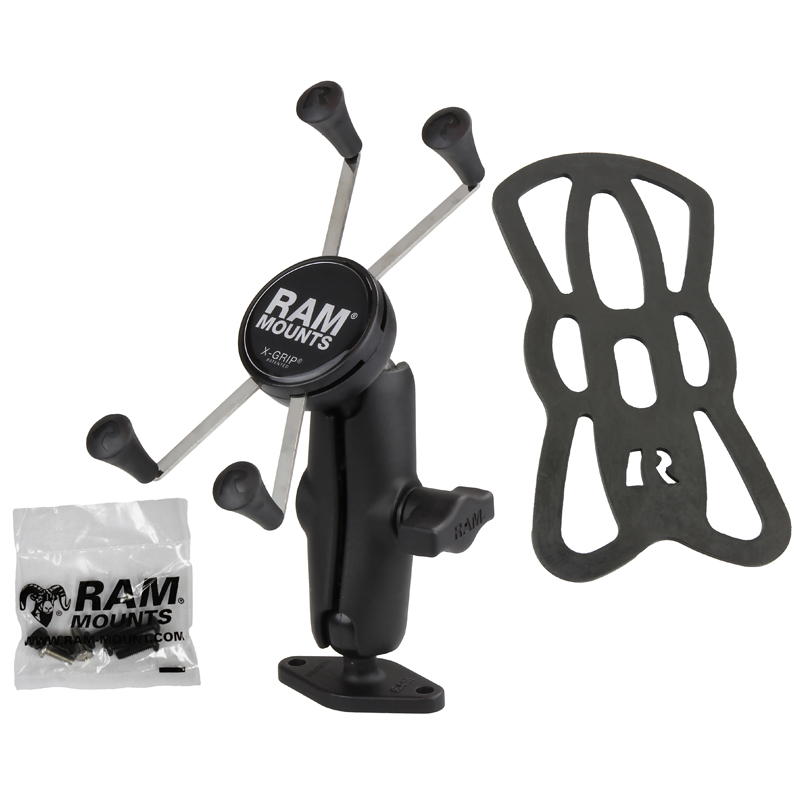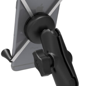 The popular spring-loaded RAM X-Grip phone holder features an ‘X’ design that expands and contracts to provide a perfect fit for your device even if it’s in a case. This large version of the RAM X-Grip fits phones ranging from 1.75″ to 4.5″ in width and keeps your device completely functional and accessible. The included diamond ball base features the industry-standard AMPS hole pattern, while RAM ball and socket technology allows for near-infinite adjustability to achieve the ideal viewing angle and helps to extend the life of your phone by providing shock and vibration damping. For outdoor applications like being used as a motorcycle phone mount the RAM X-Grip includes a device tether that is recommended for added security and peace of mind.