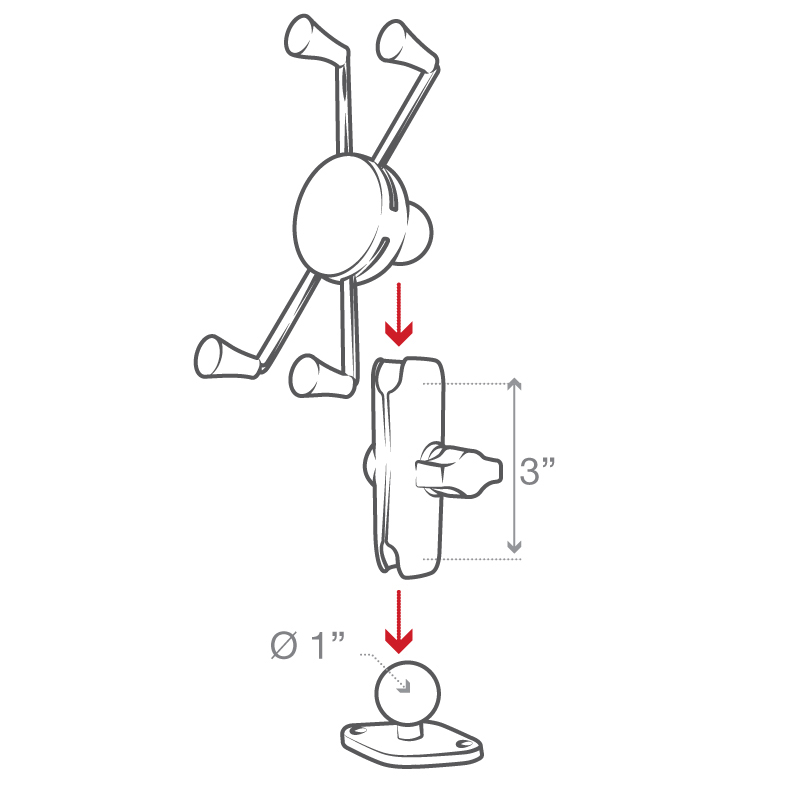 – Diamond ball base featuring universal AMPS hole pattern included; ball and socket technology allows for near-infinite adjustability
