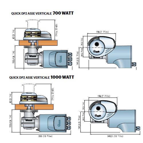 Salpa ancora verticali. Base in acciaio inox Aisi 316. Con e senza campana. Cima e catena su un unico barbotin. Sensore e magnete integrati per il contacatena. Sistema manuale di caduta libera della catena. Dispositivo tendicima. Sportellino d’ispezione. Motore stagno IP67 (700-1000W).VARIANTI