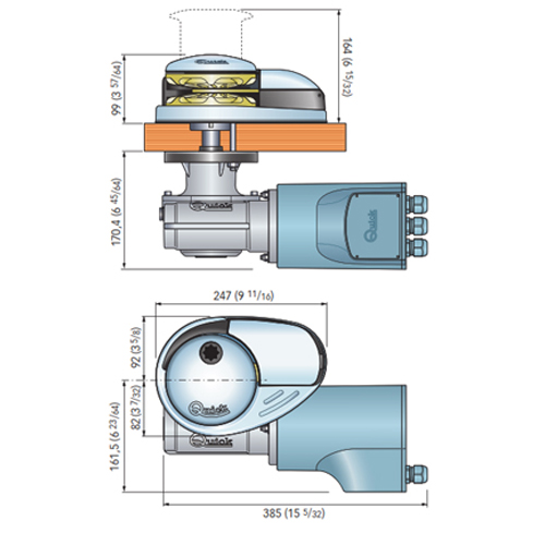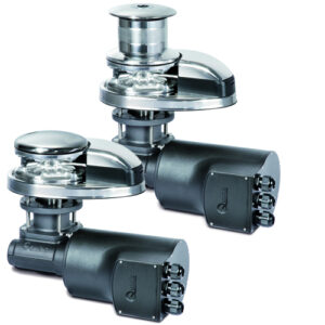Salpa ancora verticali. Base in acciaio inox Aisi 316. Con e senza campana. Cima e catena su un unico barbotin. Sistema manuale di caduta libera della catena.